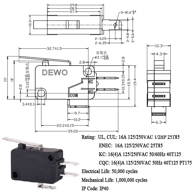 Test Voltage: AC1500V 1 minute
