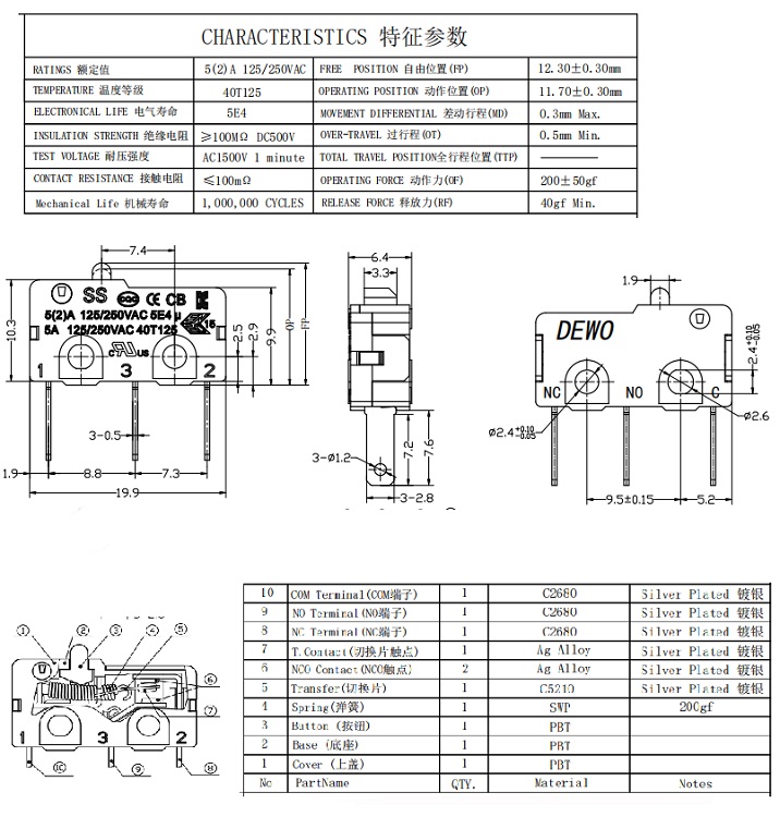 Mechanical life:1,000,000 cycles