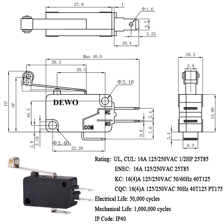 DV-16-A06-NN1-100E型微動開關