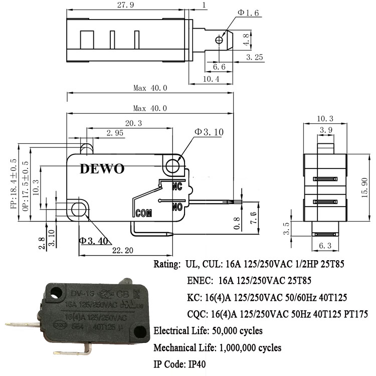 DV-16-A00-NN3-200E型微動(dòng)開關(guān)