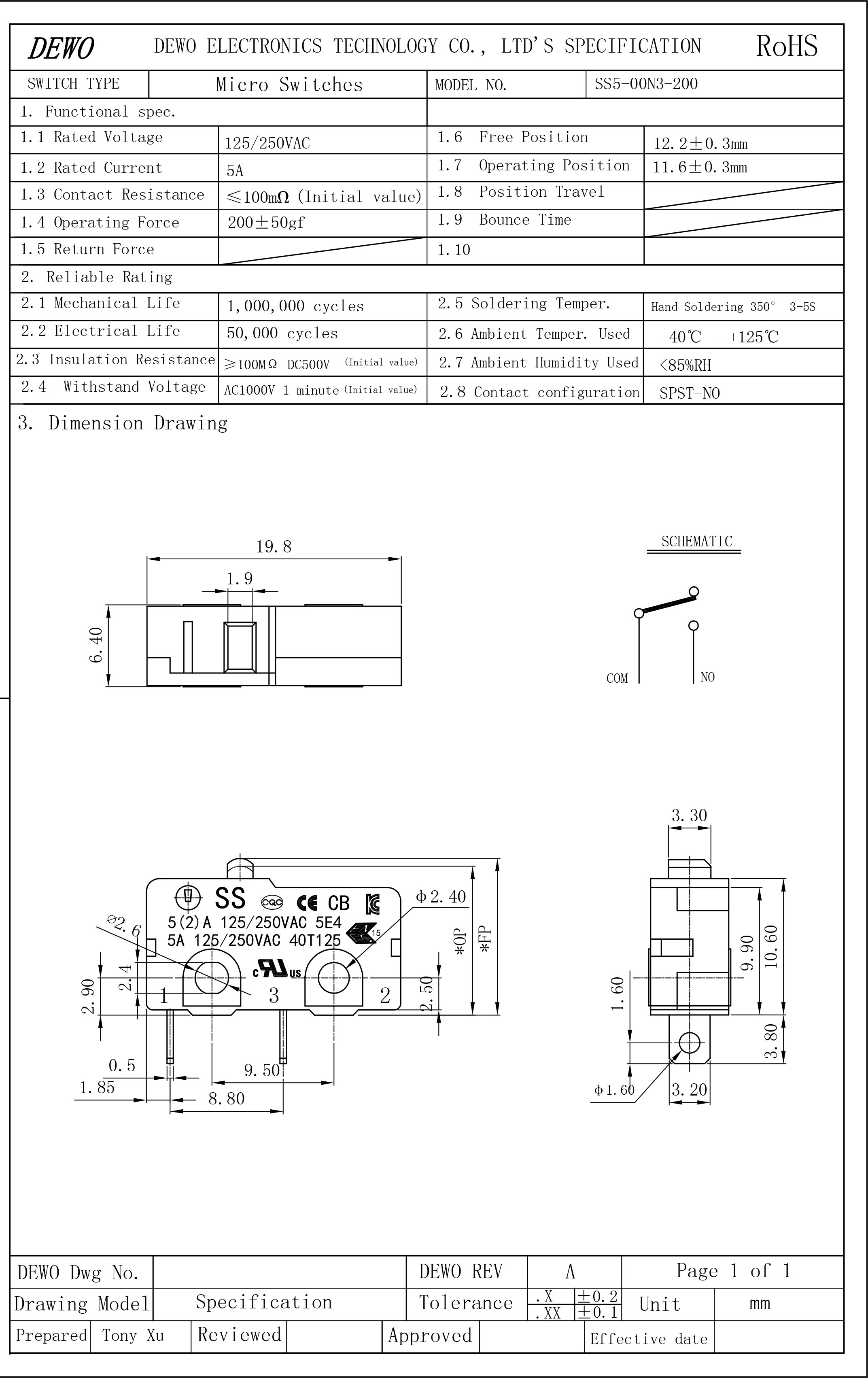 SS5-00N3-200微動開關