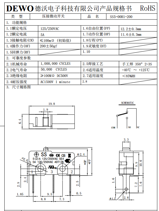SS5-00H1-200微動開關